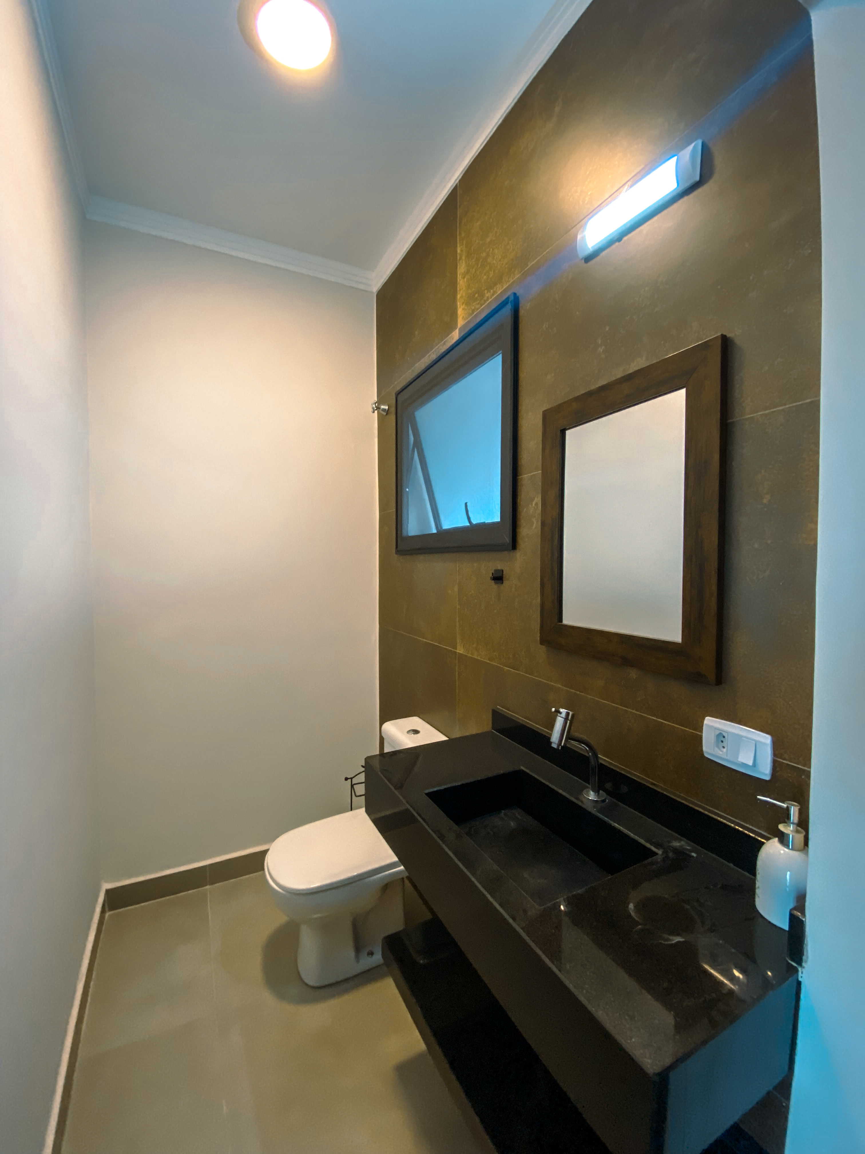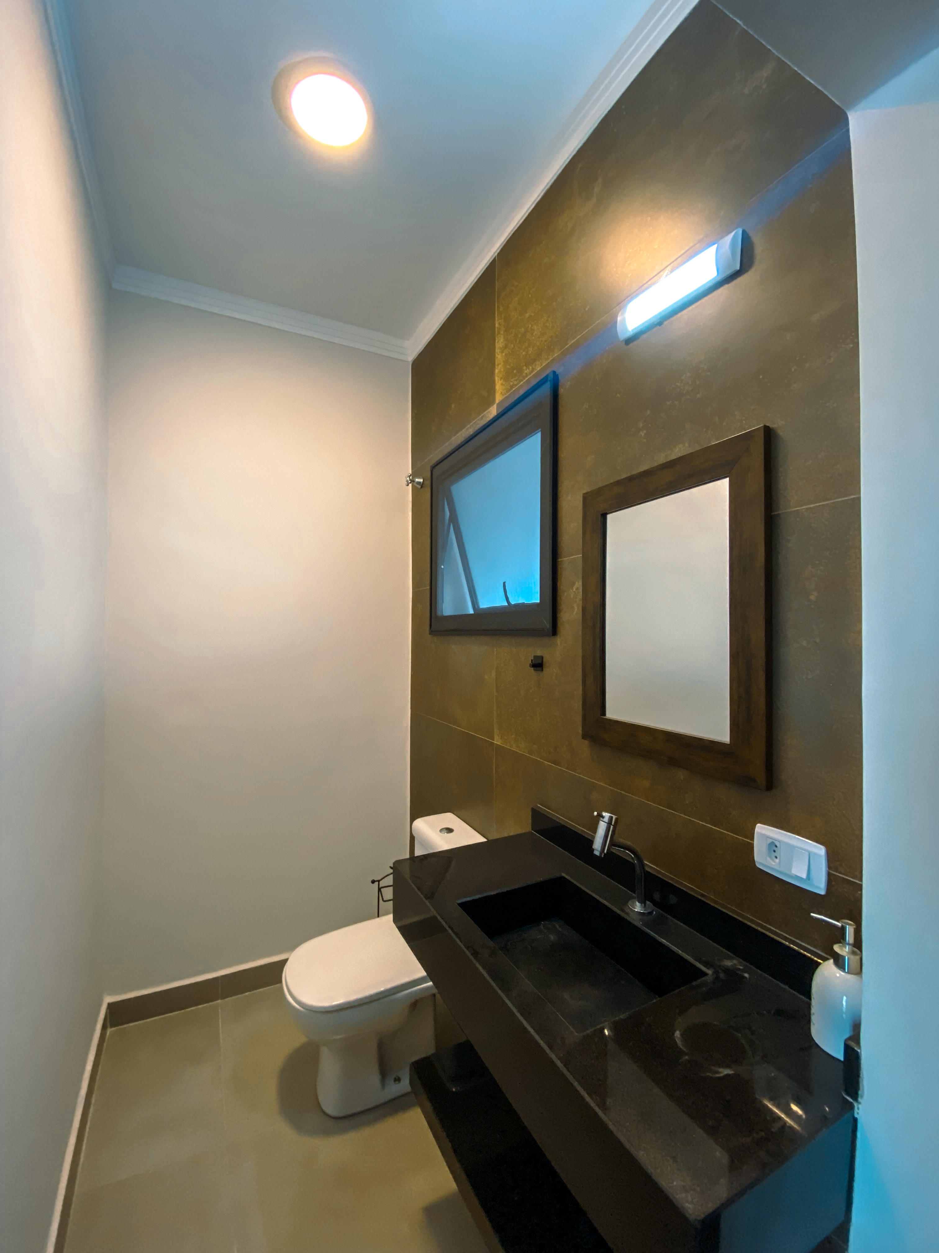 Logo na entrada, a sala de estar e jantar com pé-direito alto impressiona pela luminosidade natural e sensação de espaço, criando um ambiente elegante e acolhedor para receber amigos e familiares, agregando um lavabo.