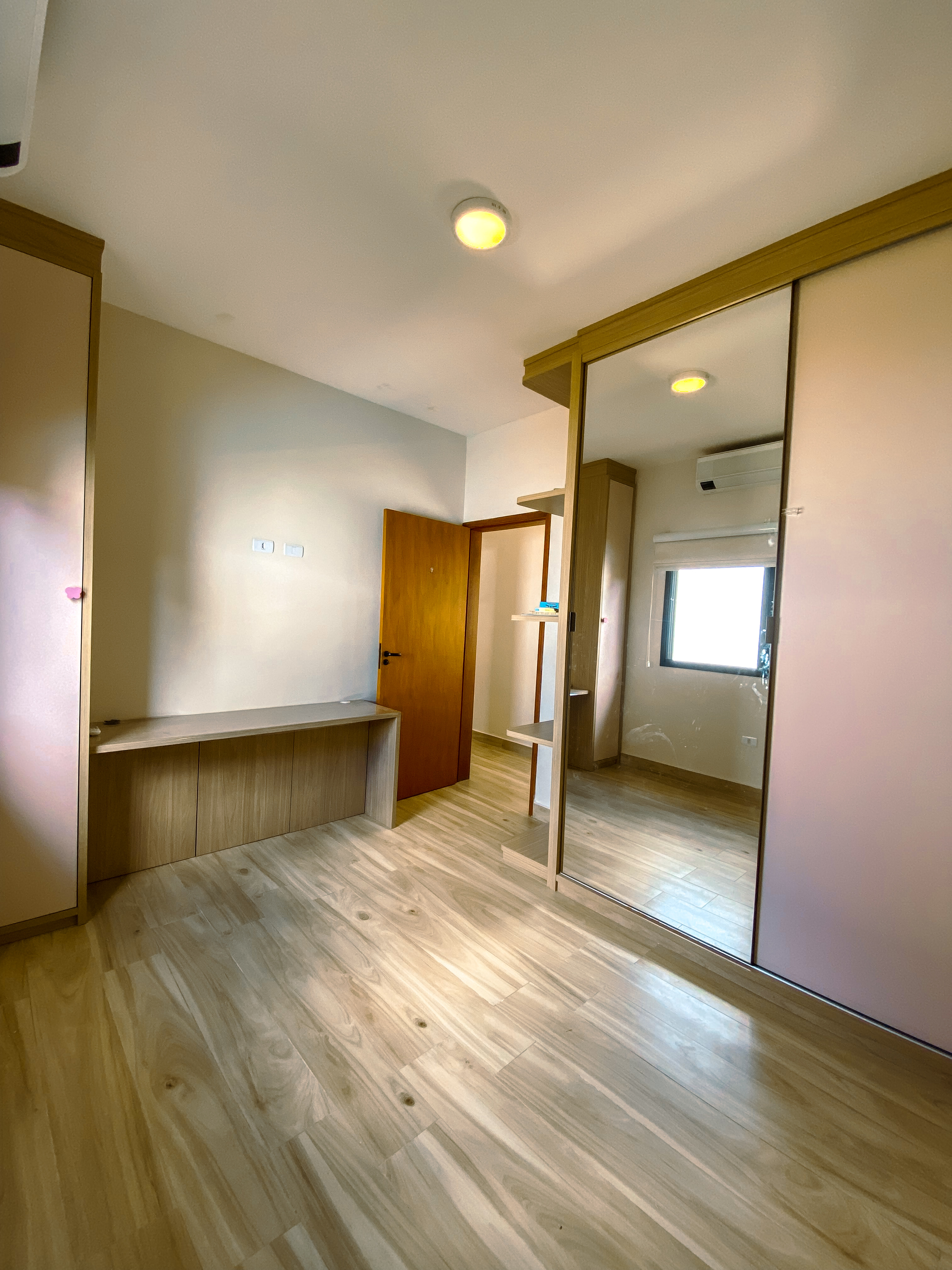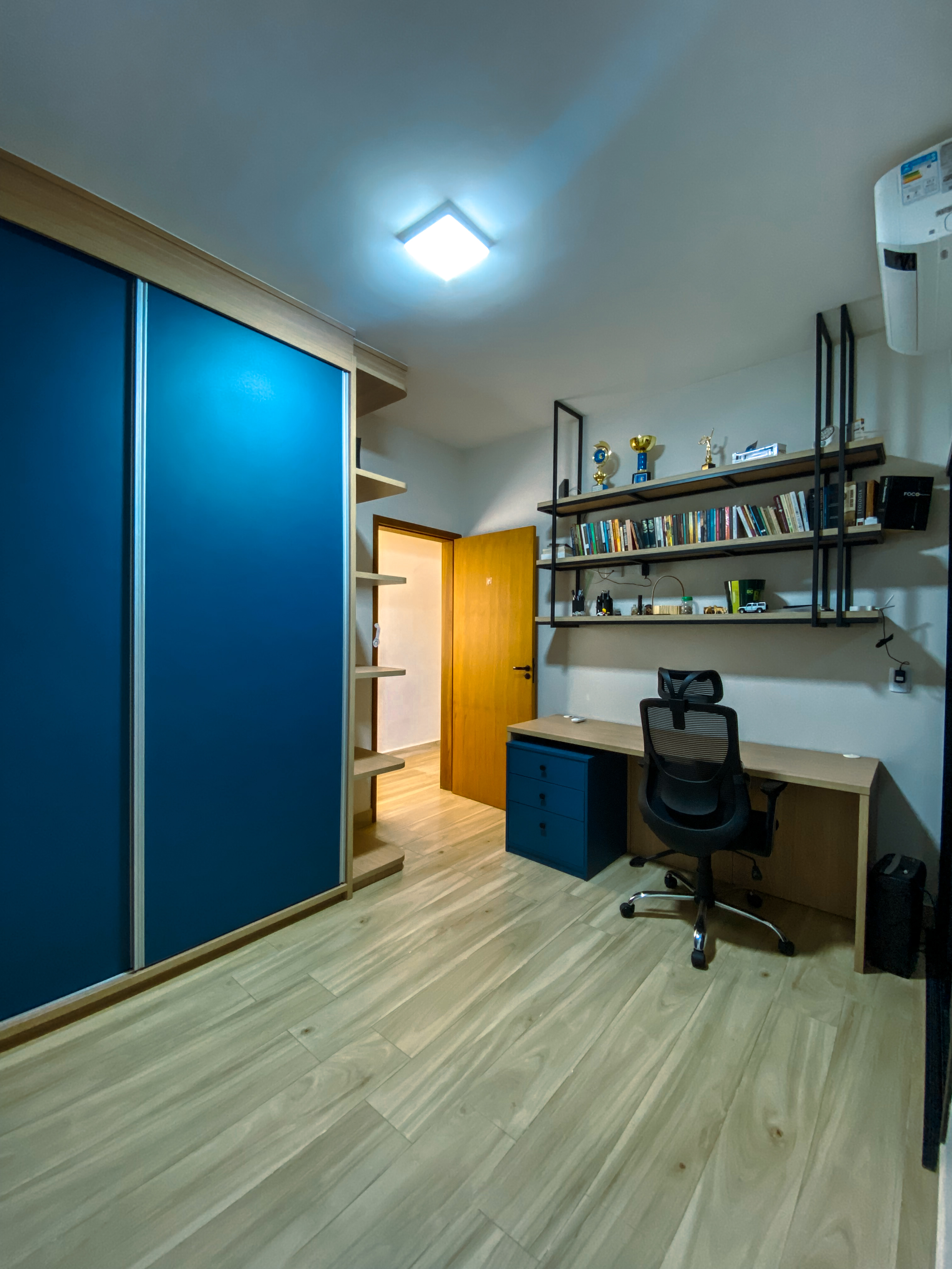 A área íntima dispõe de 03 dormitórios, sendo 01 suíte master, todos com ar-condicionado instalado, proporcionando conforto térmico durante todo o ano. Os dormitórios também contam com planejados, otimizando cada metro quadrado com inteligência.